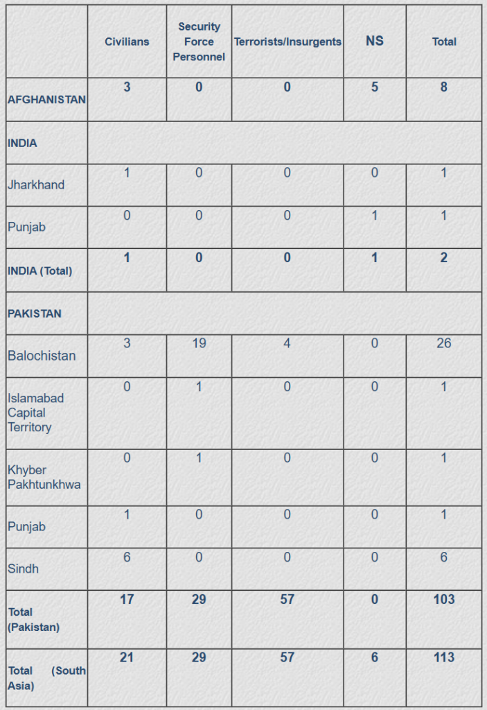 Railways in Pakistan have been attacked on at least 176 occasions since March 2000 (data till November 30, 2025). Of these, 166 attacks have been recorded in just two Provinces: Sindh and Balochistan, with 93 incidents in Balochistan and 74 in Sindh. 197 fatalities have been recorded in these166 attacks, with 161 killed in Balochistan and 26 in Sindh. While six attacks on railway infrastructures were reported in Khyber Pakhtunkhwa, one attack was recorded in Punjab in which 12 persons were killed.