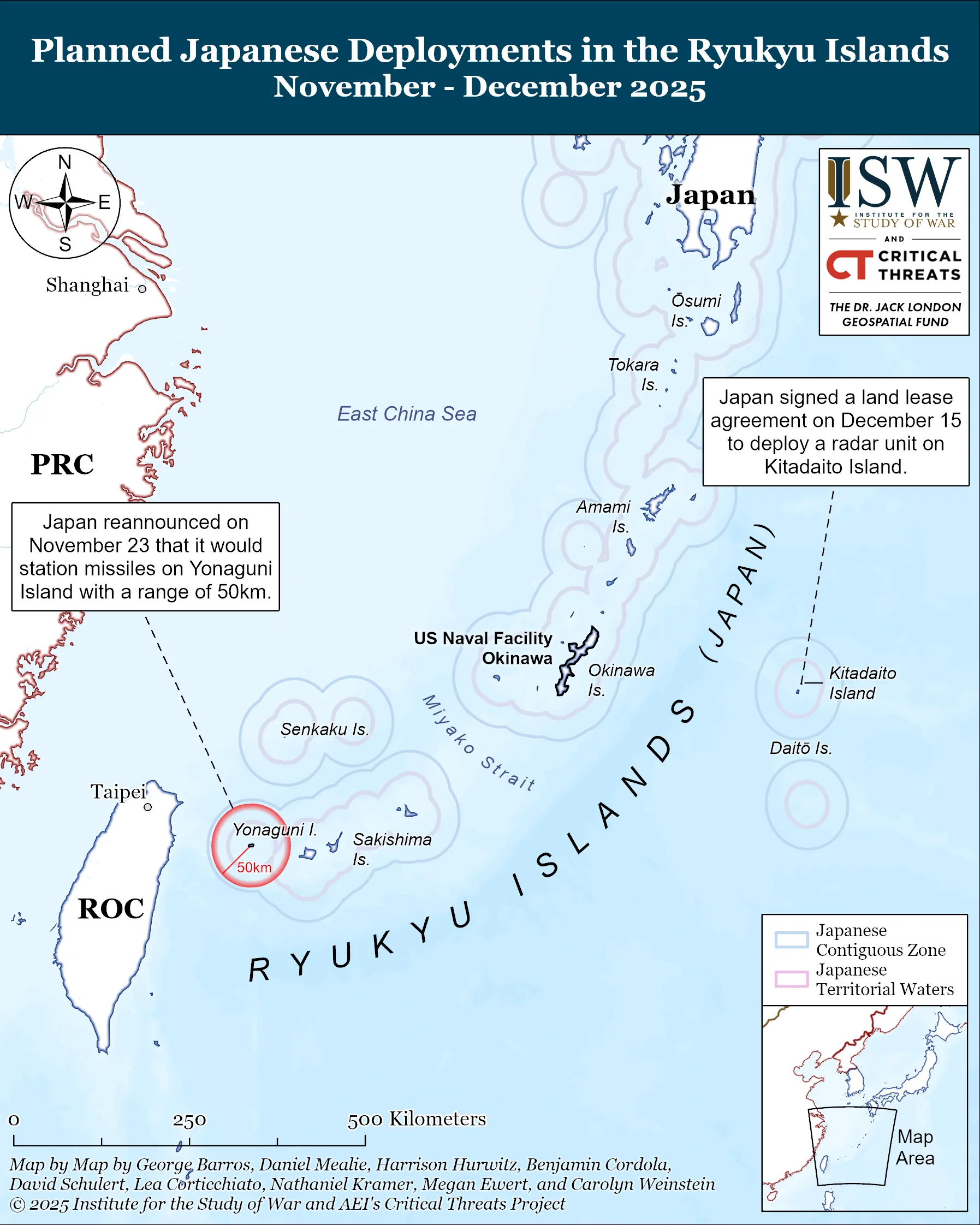 The PRC criticized Japan’s plans to increase its military footprint on remote islands. Japanese media reported that the Japanese Ministry of Defense has signed a land lease agreement to deploy a radar unit on Kitadaito Island, the easternmost island of Okinawa Prefecture.[43] The plan includes deploying a mobile warning and control radar and approximately 30 Japan Self Defense Force (JSDF) personnel.[44] The deployment was made available under the supplementary budget, which the National Diet passed on December 16.[45] Japanese Defense Minister Shinjiro Koizumi said that the deployment is in response to increased air and maritime activities around Japan conducted by neighboring countries.[46] PLA Air Force and Russian Air Force aircraft and the PLA aircraft carrier Liaoning recently operated around Okinawa between December 6 and 12.[47]PRC Foreign Affairs Ministry spokesperson Guo Jiakun criticized Japan’s plans to expand military presence on remote islands, which includes the deployment of medium-range missiles on Yonaguni Island that Koizumi announced on November 23.[48] Guo linked the deployments to Japanese Prime Minister Sanae Takaichi’s statement on November 7 that indicated the possible mobilization of JSDF in response to a hypothetical PRC invasion of Taiwan and claimed that Japan may be making provocations to create pretexts for its military expansion.[49] Koizumi asserted that the plan to deploy the radar unit is defensive in nature and consistent with common international practice, however.[50] The radar unit could enhance Japan’s ability to monitor PLA activities in the area since PLA vessels frequently transit the Miyako Strait.